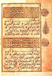 El método sistemático en la formación de palabras fue fundamental para los esfuerzos monumentales de traducción que iniciaran los abasidas en Bagdad, y que continuara por todo el mundo árabe, sobre todo en Córdoba y Toledo, en España. Para interpretar las ideas expresadas en la filosofía y la ciencia griegas, debieron acuñarse nuevos términos árabes, y, por este proceso, el idioma se convirtió en un vehículo de expresión extraordinariamente flexible. El califa Harun al-Rasid de Bagdad, quien encarnó la muy citada máxima musulmán, "busca el conocimiento, aunque esté en China", le concedió la mayor prioridad a las traducciones árabes, y mandó emisarios a Bizancio y a otras partes del mundo a buscar manuscritos antiguos para traducirlos al árabe. Bajo el califa al-Ma'mum (813–833), el trabajo de traducción en la Casa de la Sabiduría, un complejo que se convirtió en centro de traducción, academia, observatorio astronómico y en una de las bibliotecas más ricas del mundo, se transformó en una actividad altamente organizada. El cristiano nestoriano Hunain Ibn Ishaq (809–877), quien introdujo el método de traducción conceptual en vez del literal, dirigía un equipo de 90 traductores. La España musulmana, donde se multiplicaron instituciones parecidas a la Casa de la Sabiduría en Córdoba y Sevilla, emprendió un esfuerzo de la misma magnitud.[FIGURE 4]