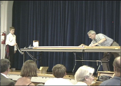 En el transcurso de las clases tuve oportunidad de conocer a los niños, de saber quiénes tenían facilidad para cantar, y quiénes necesitaban que se les despertara el gusto por hacerlo, de modo que todos recrearan la idea de la música en su mente y la compartieran con los demás. Para lograr eso en los niños, es necesario que el director esté plenamente convencido del objetivo y que siempre esté dispuesto a convencer al niño de que lo que aprenderá le gustará y, sobre todo, que logrará la meta de transmitirlo en un concierto. Así, el alumno empieza a tener confianza en el director para que guíe su voz, de modo que se convierte en un reto divertido para él y el director logra captar su atención e integrarlo al orden y disciplina que este trabajo exige. Los niños integraron un trabajo de equipo, como lo es un coro, donde aprendes a ser parte de un todo, que es la idea musical que debe transmitir la pieza a interpretar. El último día del campamento culminó con una presentación ante los papás y miembros del Instituto Schiller, de lo que los niños lograron en las diferentes actividades realizadas. Lo primero fue una exposición de los experimentos científicos, donde uno de los niños, de los EU, explicó y demostró el funcionamiento de un tren de levitación magnética, usando un modelo construido por él y su padre.