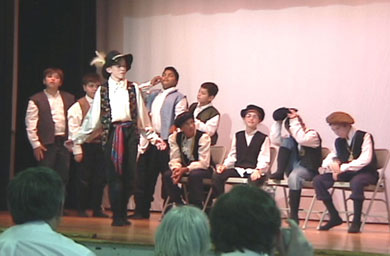 Para cerrar con broche de oro el campamento, los niños escenificaron el entremés de Cervantes, El retablo de las maravillas, logrando así caracterizar a cada uno de los personajes de la obra y contagiando al público con su gracia. Así, los niños aprendieron, mediante la aguda ironía utilizada por Cervantes, cómo cualquier charlatán puede utilizar los prejuicios de un pueblo ignorante y supersticioso para hacerlo creer lo que sea, y encima todavía pagarle por el engaño. En el intermedio, un cartel en forma de pantalla de televisión, con las siglas CNN, sugería que la manipulación de la gran prensa no es cosa nueva.