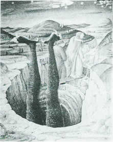 El dominio inferior de ese mundo, el infierno, es el dominio del codicioso ego pueril. El amor egoísta que expresa la palabra griega eros, basado en la sensualidad, es la emoción dominante. Geométricamente hablando, es el dominio de una geometría fija basada en el álgebra. Filosóficamente, es el dominio de Aristóteles. El dominio supremo, que se despliega en el tercer cántico de la Comedia, es el Paraíso, lleno de música polifónica y que corresponde sicológicamente al ser humano maduro, en quien la razón y el sentimiento están armonizados por la creatividad a imagen y semejanza de Dios. La emoción dominante es el ágape, la palabra griega que se usa en el Nuevo Testamento para referirse al amor universal característico del Creador . Esto corresponde al nivel del transfinito. Dante conecta estos dos campos con un dominio intermedio, el Purgatorio. Este es el nivel emocional del adolescente en crecimiento, que acepta la validez de las leyes externas y el orden de la sociedad, pero cuyas emociones están aún atadas al paraíso terrenal de los deseos egoístas. En el mejor de los casos, el tipo de amor ejemplificado por los buenos ciudadanos del Purgatorio lo expresa la palabra griega filia, amor fraternal. Dante y su guía, el poeta latino Virgilio, descienden en espiral por la superficie interna (curvada negativamente) de un cono irregular invertido. La espiral combina el movimiento rectilíneo con la acción circular y realiza trabajo. En el infierno, las almas están condenadas a círculos fijos. Dante y Virgilio realizan trabajo entendiendo la geometría del mal, conforme descienden por el infierno, de la lujuria, la ira irracional, y la codicia, el egoísmo, la violencia, el fraude y finalmente la traición. Consideremos cómo comunica Dante el cambio alineal entre cada uno de los tres dominios con sus diferentes leyes particulares. En el fondo del noveno y último círculo del infierno, Virgilio lleva a Dante colgado del cuello mientras ellos descienden por la pelambre descomunal del odioso Lucifer, encajado en hielo macizo. Entonces Virgilio da una vuelta de 180 grados. Es un cambio de fase comparable al cambio cualitativo que ocurre cuando el hielo se vuelve agua a los 0 grados centígrados. El terror de Dante se convierte en esperanza cuando él y Virgilio emergen al otro lado de la tierra, donde divisan el monte del Purgatorio y ven las estrellas (ver figura 3)