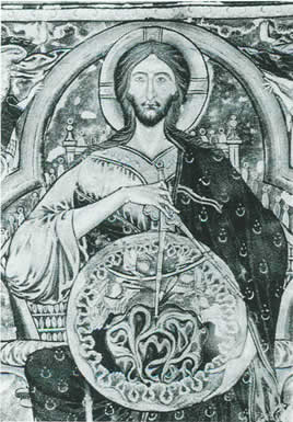 Se trata de un detalle de la portada del libro del Génesis de la Biblia que le regaló San Luis de Francia a su primo San Fernando de España a mediados del siglo 13. A pesar de la hermosa noción de Dios creando por medio de la acción circular, la pintura es completamente plana, lo que sugiere que el conocimiento geométrico de Dios no puede hacerse intelegible a los seres humanos, tal como los conocimeintos matemáticos de los maestros albañiles que construyeron las catedrales góticas se pasaban en secreto a través de las familias y los gremios. El retrato que pintó Jacopo de Barbari de Luca Pacioli dando una lección de Geometría, figura 1b, data de alrededor de 1490. En la pizarra, Pacioli demuestra la construcción del pentágono a partir del triángulo equilátero . A la derecha se ve un modelo de madera del dodecaedro. De lo alto cuelga un modelo de cristal de un sólido semiregular de 26 lados.