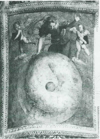 El bóceto de Rafael para el fresco de la astronomía muestra a ésta haciendo girar una esfera armilar, instrumento científico usado para representar los movimientos de los cuerpos celestes (figura 13b), cuyo estudio estaba ligado a la navegación científica de la época de los descubrimientos.