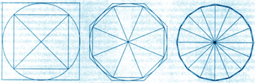 Todo esto se remonta a los supuestos básicos de la geometría plana euclidiana, que incluye el supuesto clave de que la suma de los ángulos internos de un triángulo siempre da 180 grados. El argumento es que, aún cuando tengamos algo que es aparentemente curvo, en lo muy pequeño –en otras palabras, si el cuchillo para la salchicha es suficientemente afilado—se puede hacer un corte tan pequeño de modo que no parezca curvo, sino casi recto. Por lo tanto, en lo pequeño, todo es lineal, y todo se puede reducir de esa manera. Mediante razonamientos similares, los matemáticos escolares sostienen que, de hecho, se puede cuadrar el círculo, es decir, construir un polígono de igual área que un círculo dado, simplemente añadiendo más y más lados un polígono inscrito en un círculo, ad infinitum.