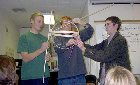 Jovenes larouchistas, miembros del Instituto Schiller, durante una de sus exposiciones.