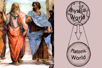 (derecha : el mundo visto según Platón)