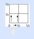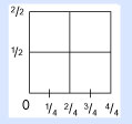 Cuando cortamos verticalmente el cuadrado a la mitad, obtenemos una de nuestras fracciones, es decir, el primer 1/2. Luego, cortamos el mismo cuadrado a la mitad de forma horizontal para conseguir la segunda fracción. Ahora, marca la base y el lado izquierdo del cuadrado 0, 1/2, 2/2, como se muestra.