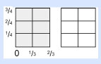 Si a ti o a tu hijo los privan de esto, porque las escuelas han eliminado del curso esta geometría de los cuadrados, lo que sucede es que el estudiante se convence a sí mismo, o a sí misma, de que las "raíces cuadradas", y todas las matemáticas superiores, son misteriosamente difíciles y, por tanto, algo que sólo "gente inteligente" puede entender. ¿Les suena familiar? Es por estos actos de omisión que el estudiante se "lava el cerebro" él mismo, y reduce sus expectativas. El siguiente paso en estas matemáticas de autolavado cerebral, es que evites siquiera pensar. Una nueva paradojaAhora, veamos con mayor detalle nuestro segundo ejemplo: 2/3 × 3/4, que, como descubrimos, es igual a 6/12.