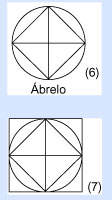 Cuando abras el círculo verás adentro un cuadrado perfecto y cuatro triángulos, además de cuatro pequeños arcos del círculo sobre cada lado del cuadrado. ¿Empieza a aclararse todo?