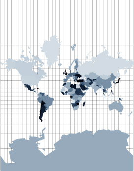 Otra proyección que conserva los ángulos fue desarrollada por Gerhard Kremer (15121594), conocido también como Gerhard Mercator. En la proyección de Mercator la imagen del ecuador es una línea recta, y las de los círculos de longitud son líneas perpendiculares distribuidas de forma homogénea a lo largo de ese ecuador. Las imágenes de los círculos de latitud son líneas rectas paralelas al Ecuador, pero la distancia entre ellas aumenta (ver figura 4).