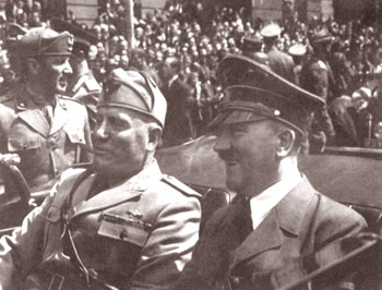 La Revolución Americana, con su insistencia en que no haya una religión oficial, constituyó la realización político–filosófica del proyecto iniciado por Dante y Cusa. La supresión de los jesuitas por parte de Carlos III, en el marco de su respaldo a la Revolución Americana y su fomento a la investigación científica, fue un reflejo decisivo de esta misma corriente histórica en la cultura de habla española. Los jesuitas dirigieron la insurrección cristera en México, usando los mismos métodos organizativos por los que Carlos III suprimió la orden en 1767. Algunos autores, como Meyer, alegan falsamente que los esfuerzos de la Revolución Mexicana y, de forma implícita, del movimiento independentista mexicano y de la Reforma, reflejaban una forma del llamado "regalismo" borbón. Pero no es accidental que el calificativo de despótica y "regalista" que le da Meyer a la República de México, deriva directamente de los carlistas, quienes desde 1830 lucharon a favor de una forma teocrática medieval de catolicismo romano en el Estado español. Históricamente, la jerarquía de la Iglesia católica en México trató de ejercer un poder temporal, y se opuso al movimiento de independencia de 1810, a la Reforma de 1857, a la Revolución de 1910 y a la Constitución de 1917, aun cuando otros elementos de la Iglesia, tales como Miguel Hildago y José María Morelos y Pavón, dos sacerdotes y dirigentes del movimiento independentista, se opusieron de forma activa a la oligarquía. En 1808 el arzobispo de México, Francisco Javier de Lizana, y el inquisidor Bernado de Prado y Obejero, se contaron entre los dirigentes de la conspiración contra el virrey José Joaquín de Iturrigaray y Aróstegui, quien contemplaba que México se independizara de España. Cuando estalló la Guerra de Independencia, más de cien sacerdotes del bajo clero se alistaron en las filas de los insurgentes, pero la Iglesia los anatemizó, los excomulgó y los degradó de su rango sacerdotal. En 1811 se publica una Invitación a los católicos a someterse a lo que Dios y las Cortes Generales demanden de su fe, que tildaba a los próceres de la Independencia de "hombres desvergonzados y sacrílegos, infames y desnaturalizados", que "conspiran para desterrar a la religión y la lealtad de este país".[1] El contenía una declaración de los obispos de Puebla, Oaxaca, Guadalajara y Nuevo León, en la que concedían 240 días de indulgencia a los fieles "por cada párrafo que lean o escuchen leer" del mismo. El arzobispo Lizana, los obispos Manuel Abad y Queipo, Juan Ruíz de Cabañas, y otros prelados, junto con la Inquisición, excomulgaron a todos los insurgentes y sus simpatizantes. Durante la guerra con los EU en 1847, algunos elementos de la Iglesia incitaron y financiaron una revuelta. Respaldaron la dictadura de López de Santa Anna, y procuraron fundar un protectorado monárquico bajo los auspicios de España. El 19 de diciembre de 1855 el cura Francisco Ortega y García, de Zacapoaxtla, dirigió una rebelión contra el presidente Ignacio Comonfort. Más tarde, los elementos reaccionarios de la Iglesia precipitaron la violenta guerra de Reforma contra Juárez y las nuevas leyes liberales, y, subsecuentemente, provocaron en gran medida la intervención francesa. El arzobispo Pelagio Antonio de Labastida y Dávalos fue miembro del triunvirato que estableció el imperio de Maximiliano. Todos los soldados mexicanos que combatieron contra los franceses fueron excomulgados. Con el presidente Porfirio Díaz, una facción de la jerarquía de la Iglesia procuró restablecer sus privilegios. Luego conspiraron también para derrocar al presidente Francisco I. Madero, y se confabularon con el oligárquico Victoriano Huerta. De este modo, la corriente teocrática ultramontana de la Iglesia en México nunca aceptó la separación de la Iglesia y el Estado en México, acorde el modelo del principio constitucional estadounidense. Y si consideramos a México desde esta perspectiva histórica, queda claro que, comenzando a principios de los 1900, algunos jesuitas iniciaron un movimiento basado en los principios del sinarquismo carlista, que tenía como propósito establecer un dominio católico ultramontano en México. Como observó Walter Lippman, "en 1926 y 1927 la mayoría de los prelados [en México] sólo buscaban una solución mediante el derrocamiento del Gobierno". Lippman añadió que los prelados mexicanos veían el mundo a través de la encíclica de 1864 del papa Pío IX, Sílabo de errores, y que, en "su visión social, suponían que el orden feudal era parte de la naturaleza de las cosas" (este es el mismo Pío IX que simpatizaba con la Confederación esclavista en la Guerra Civil estadounidense). Dwight Morrow, el embajador estadounidense en México que actuó como mediador en las negociaciones que pusieron fin a la insurrección cristera, hizo la observación de que los principios de la ideología que expresa el Sílabo de errores no los aceptaría el "Estado mexicano, ni ningún otro Estado moderno. No sólo la mayoría de los protestantes, sino también muchos católicos liberales, piensan que los párrafos cinco y seis del Sílabo, que tratan sobre la Iglesia, sus derechos y sus relaciones con otras sociedades civiles, son irreconciliables con la independencia del Estado nacional moderno. El abismo entre la doctrina de la Iglesia y sus formas más extremas aún no se ha salvado en la teoría. Sin embargo, la moderación y el sentido común han generado un modus vivendi en la mayoría de los países importantes del mundo". El origen común del nazi–comunismo![]() Adolfo Hitler y Benito Mussolini Como señala correctamente el libro El PAN: el partido de la traición, editado en 1985, no hay contradicción entre el fascismo de los carlistas españoles y el fascismo de los nazis, o el del Partido Comunista. Todos tienen la misma madre, por lo cual se caracteriza de forma apropiada al sinarquismo como nazi–