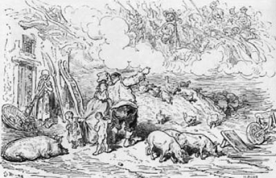 Así nos encontramos a Sancho en el Capítulo IV de la Parte segunda, diciendo: "Eso allá se ha de entender con los que nacieron en las malvas, y no con los que tienen sobre el alma cuatro dedos de enjundia de cristianos viejos, como yo los tengo". Nota el orgullo con que Sancho usa la palabra enjundia (grasa) en relación a su alma, que representa un ataque de los españoles contra las religiones judía y musulmana, ninguna de las cuales permite comer cerdo.