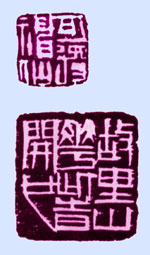 En sus “Cartas sobre la educación estética del hombre”, Schiller define que “el secreto en el dominio del verdadero arte consiste en la eliminación de lo material a través de la forma” y los manuales chinos fueron diseñados con este objetivo. Los sellos se han usado en china desde tiempos inmemoriales. Sobre las pinturas funcionan como firmas, usualmente en brillantes tonos rojos. Por lo general, el artista firmará con uno o dos sellos, que incluyen su nombre, pueblo natal, y quizá un lema. (algunas de las figuras, como la A4, contiene un gran número de sellos. Estos no fueron puestos por el artista, sino por sus admirados dueños, quienes agregaban sus sellos a la pintura). La elaboración de sellos es considerado un arte independiente y han jugado un rol parecido a la inscripción poética, enalteciendo el contenido de la pintura. La figura A7 muestra los sellos de dos artistas diferentes. En un sello se lee: “alcanzando la inmortalidad”, y en el otro, que fue puesto sobre una pintura de flores primaverales, “los capullos silvestres de mi tierra florecen en esta temporada del año”. Así que si lees los sellos, no será difícil entender cómo la pintura, la escritura y el sello se enriquecen mutuamente. |