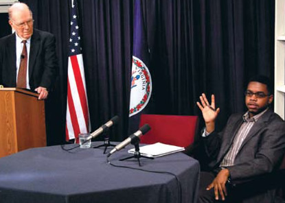 Another speaker at the opening session was Pavlo Viknyansky, head of the "Student Republic" project of the National Democratic Youth League of Ukraine, speaking on "A Team for the Future." The Student Republic has participated in an ongoing series of exchanges with the Basement. The invitation for the Basement to address the Crimea conference came about after its initiator viewed Peter Martinson's video address to last winter's "Team for the Future" event, held by the Student Republic movement in Ukraine's Carpathian Mountains. That Russian-subtitled video has been viewed by thousands online.