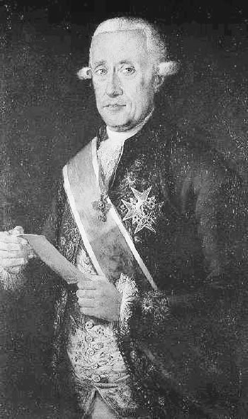 ![]() Figura 15. Retrato de Jose Moñino, conde de Floridablanca, detalle. El rey Carlos III, en su lecho de muerte, le hizo sólo una petición al nuevo rey; que mantuviera a Floridablanca como primer ministro. |