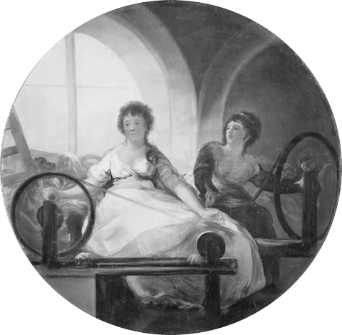 Godoy le encargó a Goya, el pintor de la corte, que pintara cuatro tondos de alegorías representando los valores económicos que Campomanes y Jovellanos defendían: el comercio, agricultura, ciencia e industria.