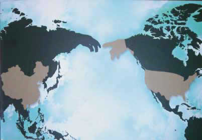 Un dibujo de un artista chino plasma el concepto de China tendiendo su mano a Estados Unidos a través del Estrecho de Bering. |