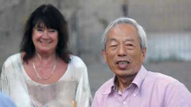 Zepp-LaRouche visitó China en agosto y fue invitada a viajar por la Antigua Ruta de la Seda. Aquí se le muestra acompañada de Peng Jinzhang, un investigador de la Academia Dunhuang. La foto abajo muestra el desierto en el transfondo y al frente la construcción de la nueva ferrovía que se construye desde Lanzhou a Urumqi. |