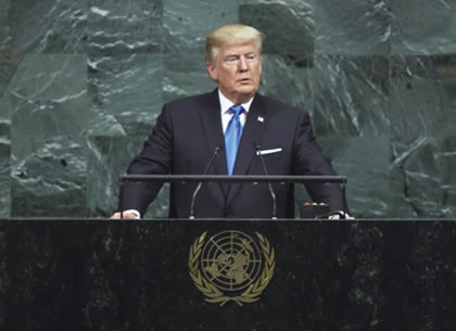 U.S. President Donald Trump addresses the UN General Assembly, Sept. 19, 2017. |