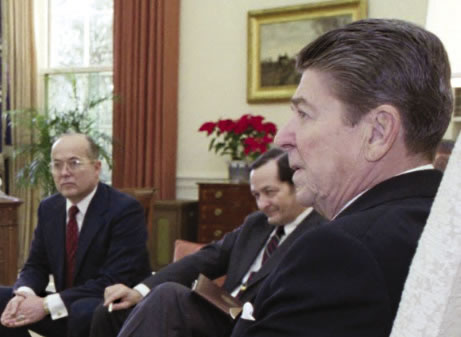 1982-1983 were years of enormous battles within the Reagan Administration. On one side was National Security Adviser William Clark and his assistant Richard Morris, who continued to task LaRouche and his colleagues at EIR on national security issues. On the other were the Anglophiles controlled by Vice President Bush, who found LaRouche to be “the most dangerous man in America.” Richard Morris testified in the LaRouche cases that Kenneth deGraffenreid, Walter Raymond, and Roy Godson were the three most vocal opponents of LaRouche inside the Reagan Administration. Raymond, along with Bush, deGraffenreid, and Margaret Thatcher, were the primary authors of Project Democracy, ceding perception-control and regime-change operations to private organizations and NGOs operating under CIA and MI6 direction.